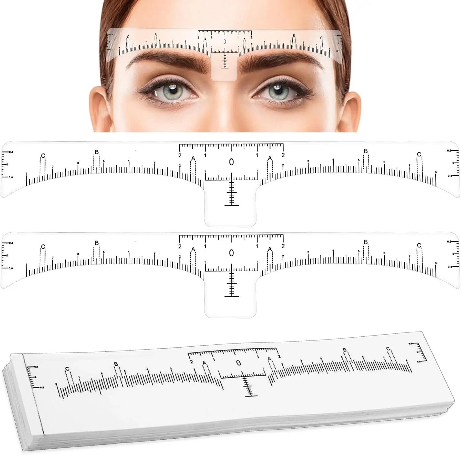 Eyebrow mapping is essential for creating natural yet precise shapes, and the Kensi Cosmetics Brow Ruler Stickers make this process effortless. The transparent design allows you to clearly see the skin underneath, while the measurement lines help you identify the correct starting point, arch, and end of the brows. Simply align the midpoint of the ruler between the eyes, follow the A/B/C marking points, and you’ll have perfectly measured brows in minutes.